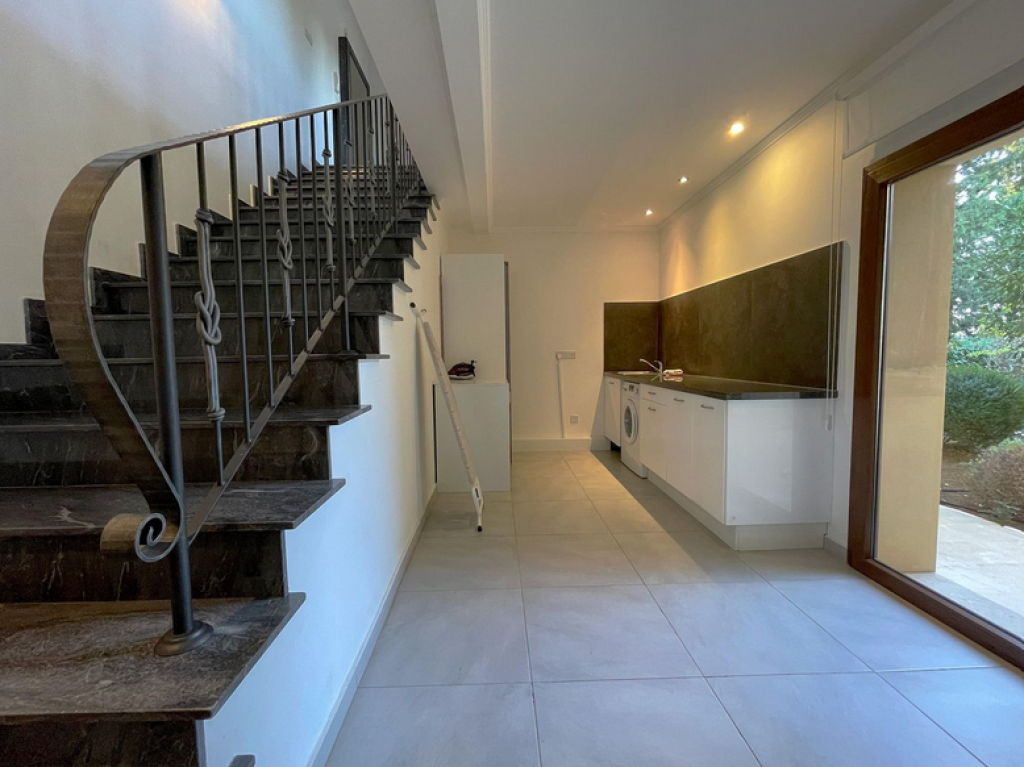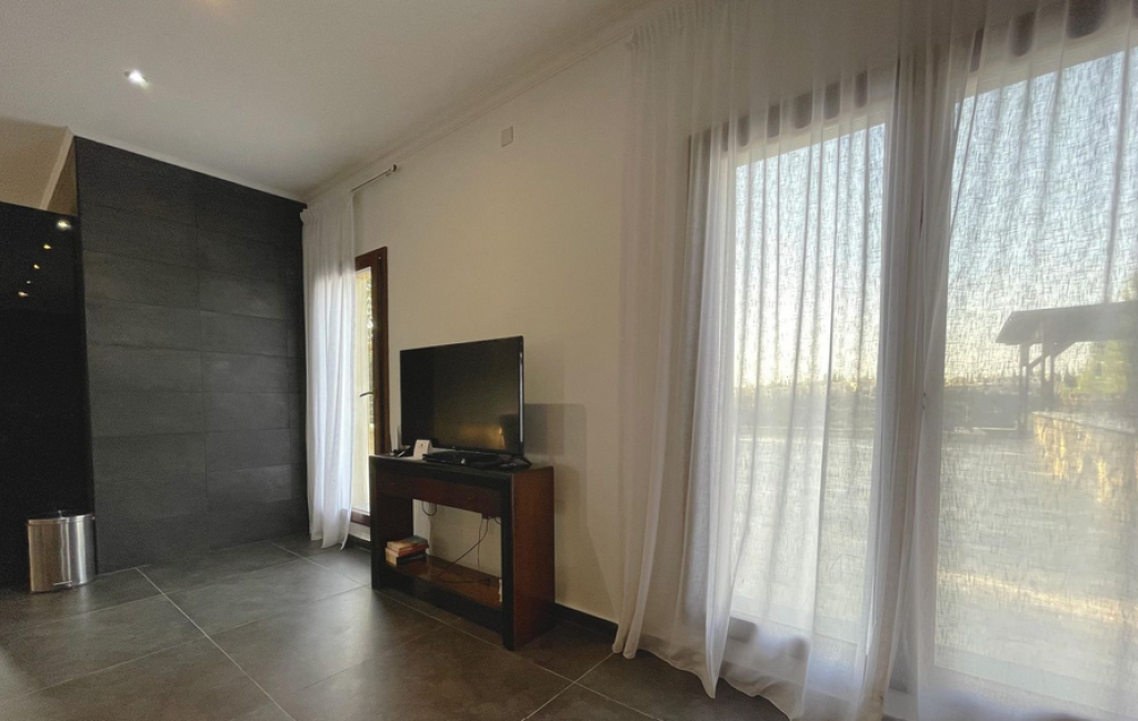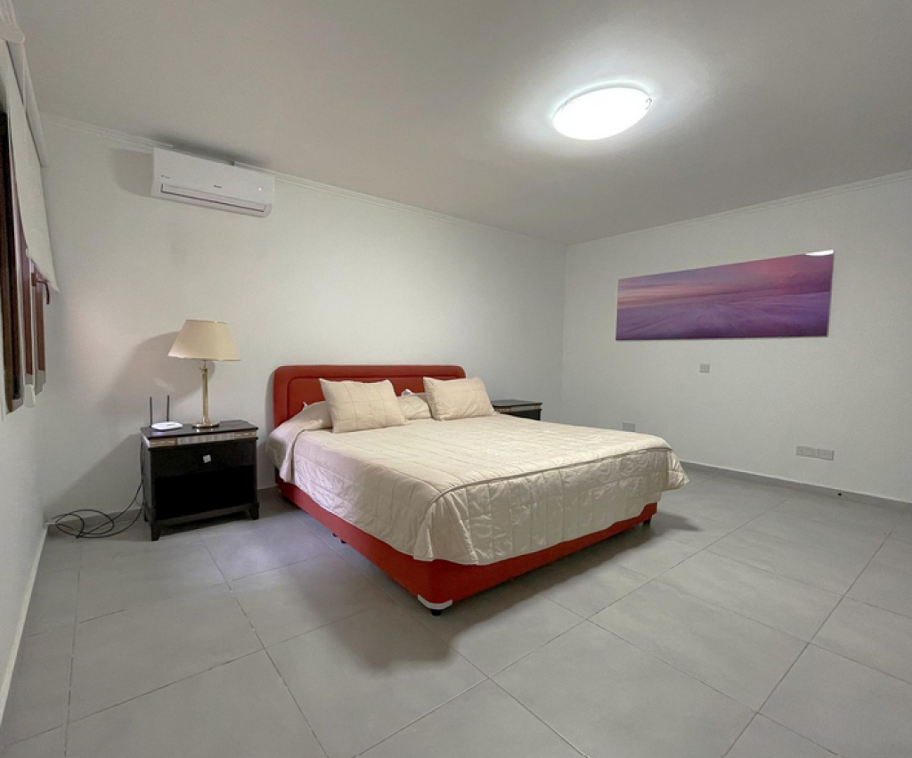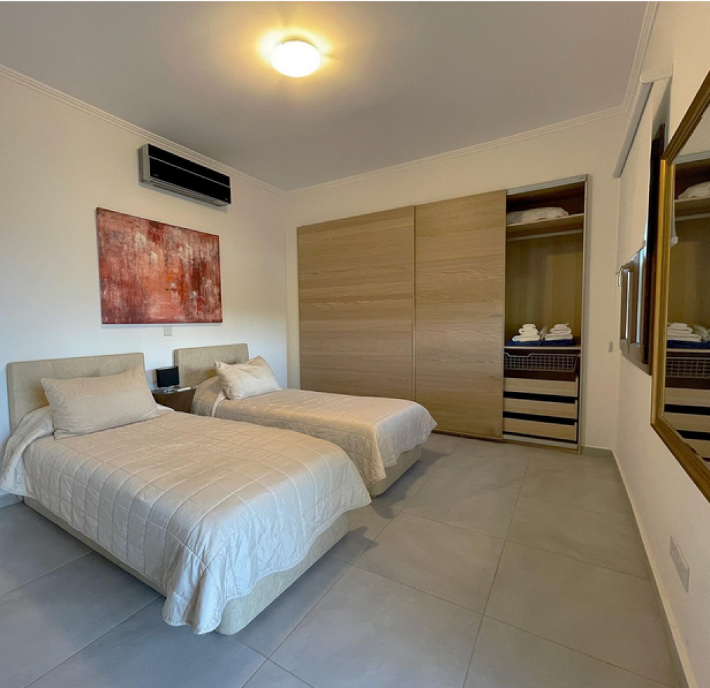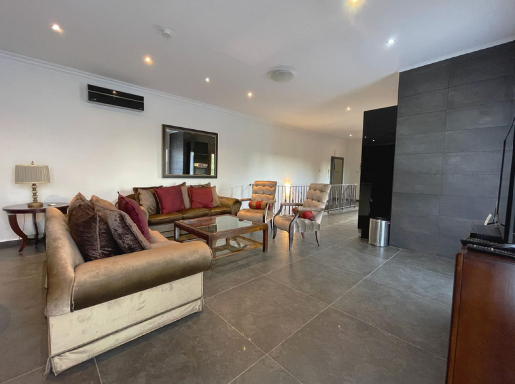 Five-bedroom house in Aphrodite Hills, Paphos. The villa is on two levels comprises of an entrance, living/dining area, kitchen with auxiliary kitchen, storage room, plant room, five bedrooms, verandas and garden. The master bedroom is fitted with an en-suite bathroom, two bedrooms are fitted with an en-suite shower whilst two further bedrooms have common access to a shower room at lower ground floor level. It enjoys private swimming pool , landscape gardens and uncovered parking space.