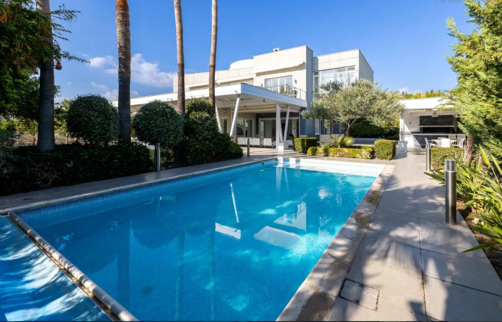 This luxury 5-bedroom villa is located near Parklane Hotel in Limassol, just a short walk from the sandy beach. Nestled within a small gated complex of five detached villas, it offers prime access to the sea and proximity to upscale restaurants, shops, and entertainment centres.
