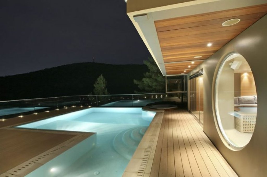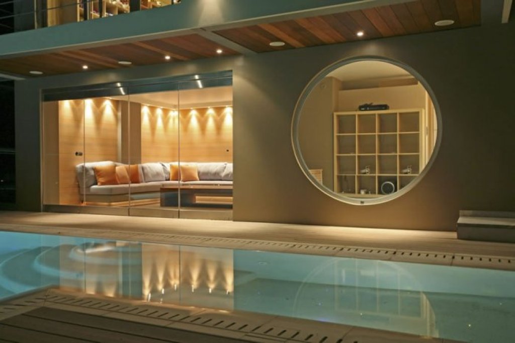 The lounge adorns a minimalist fireplace and a waterfall recycled water with two light sources, the ceilings in all the main areas (as well as in the bedrooms) feature recessed lighting and the living room and 2 master bathrooms and lighting under furniture.