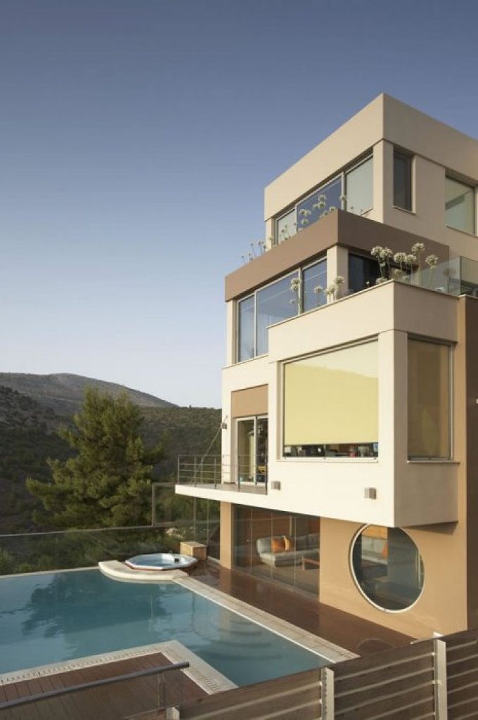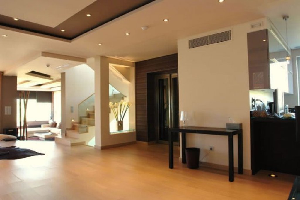 On the hill of Panorama of Voula, a luxury detached house with magnificent views of the mountain and the sea. This house is built with the best materials in the market (structural and finishes) and it has Italian branded furniture.