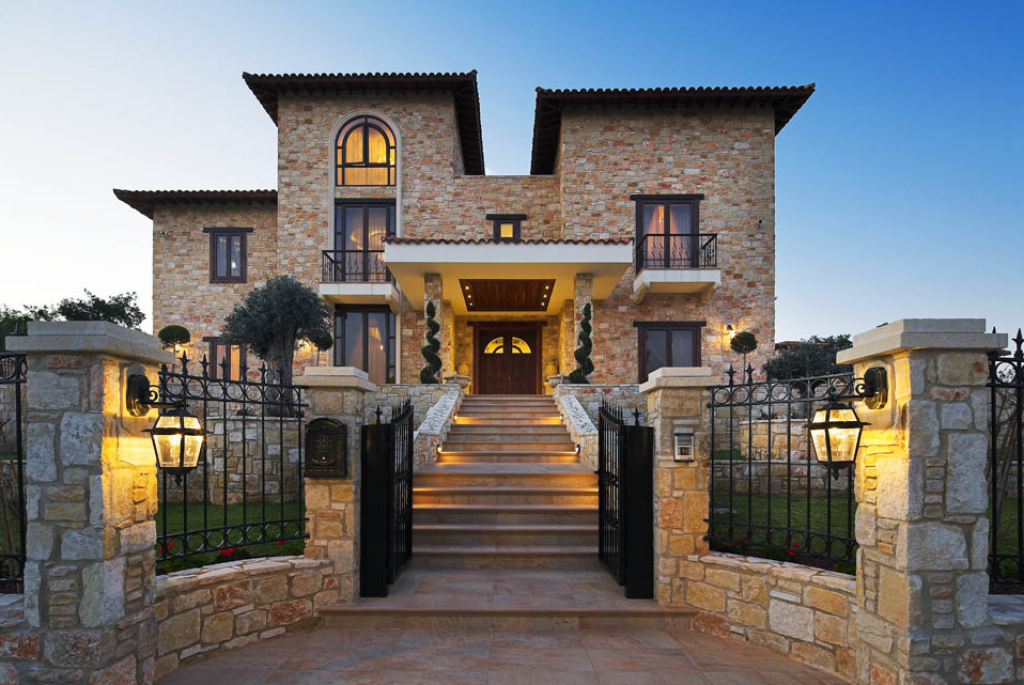 4. Stone wall boundary with iron bars and 2.20m high electric gate remotely controlled entrance door – video/audio link to the building.