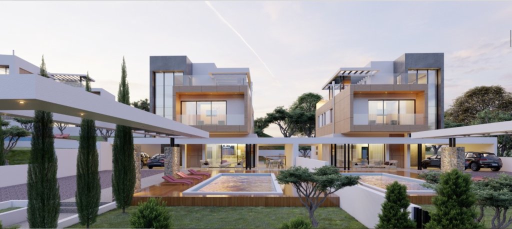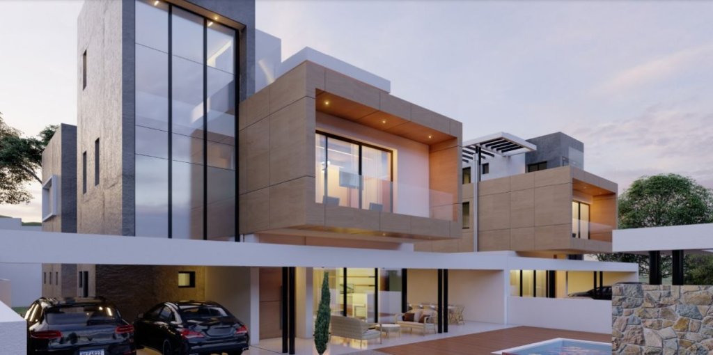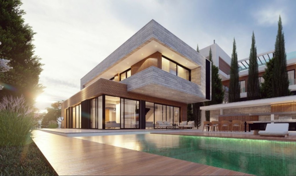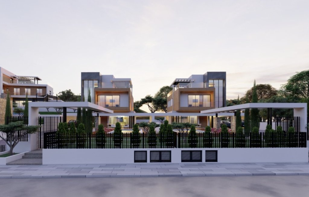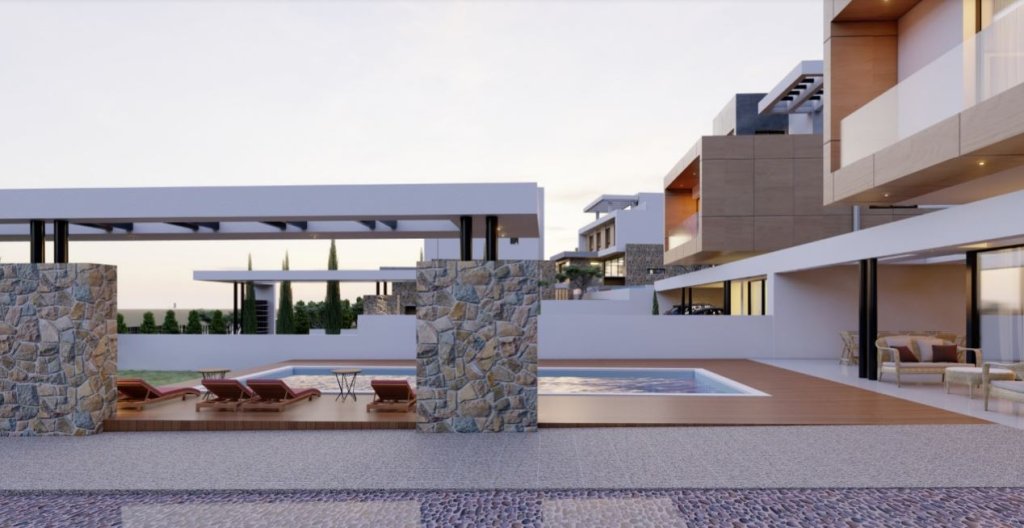 Modern off-plan 6 bedroom, 6 baths villa for sale in Agios Tychonas. It is part of the project of 14 luxury villas in a popular residential area of Limassol. The plot size is 994 sqm with a private pool, back garden and 2 parking places. The total covered area of this amazing villa is 440 sqm including the interior living area, covered verandas, roof covered area, storage and covered parking.