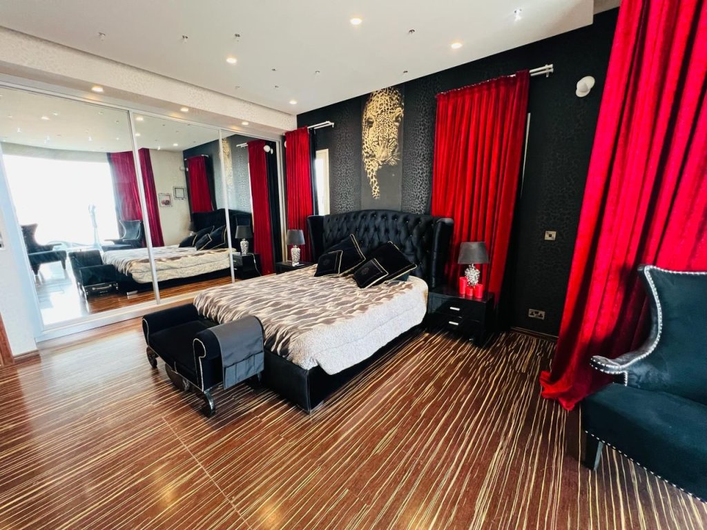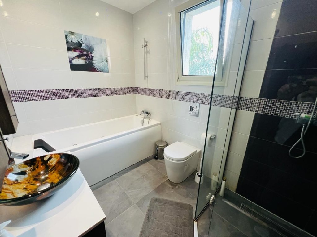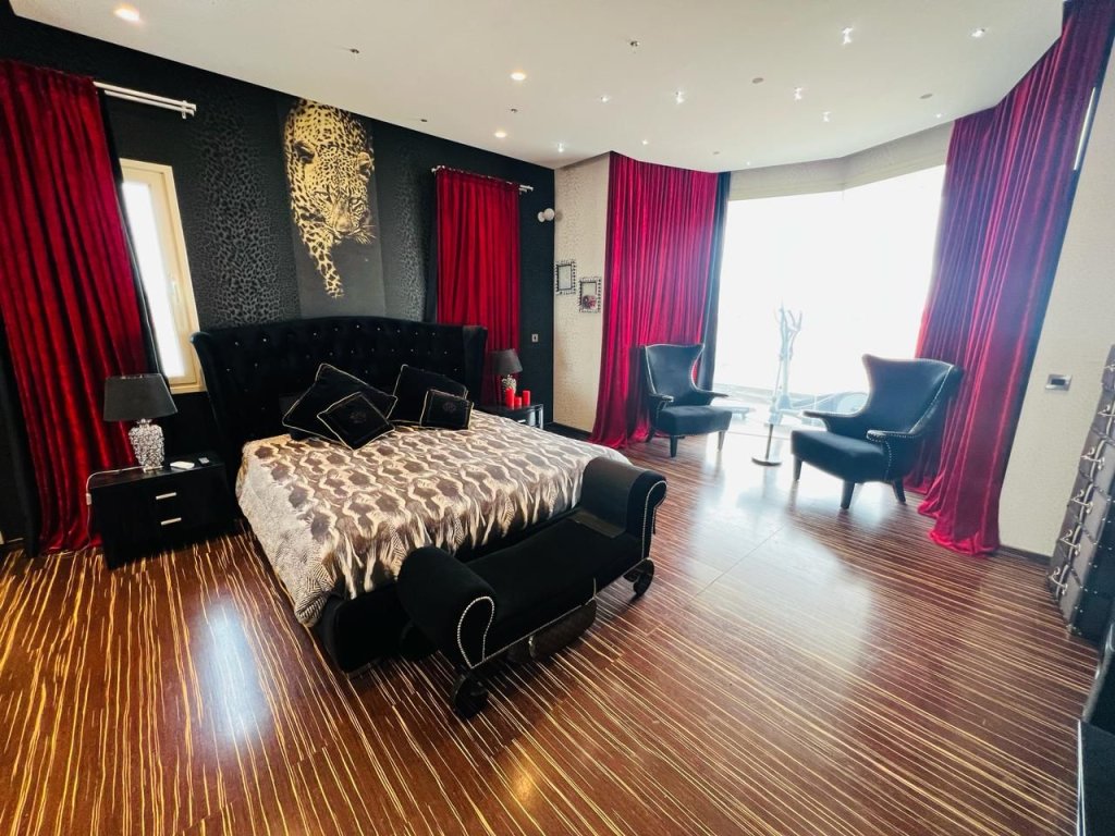 For sale a luxury 7 bedroom house + office in a prestigious residential area near Crowne Plaza hotel, within walking distance from the beach and all amenities. The covered area is 420 m2., the plot is 541 m2. The house consists of 3 levels: on the ground floor there is an open-plan kitchen connected to the dining room and living room, a guest toilet, a laundry room, a guest bedroom and a maid's room with a shower. On the second floor there are four bedrooms: the master bedroom with a bathroom with a shower and a dressing room, one bedroom with a bathroom with a shower, two more bedrooms have a shared bathroom, a storage room and a game room. On the second floor there is a home cinema area with a kitchenette, a spacious bedroom, a separate office, a bathroom, a sauna and a spacious covered veranda overlooking the sea and the city. The house has central heating (gas), heated floors on the upper floor, double glazed Windows and shutters, 2 separate entrances, parquet floors, solar panels for hot water, thermal insulation and alarm system. system. There is swimming pool, barbecue area, cameras, garage for 2 cars + 1 covered parking, storage room and an indoor kiosk.