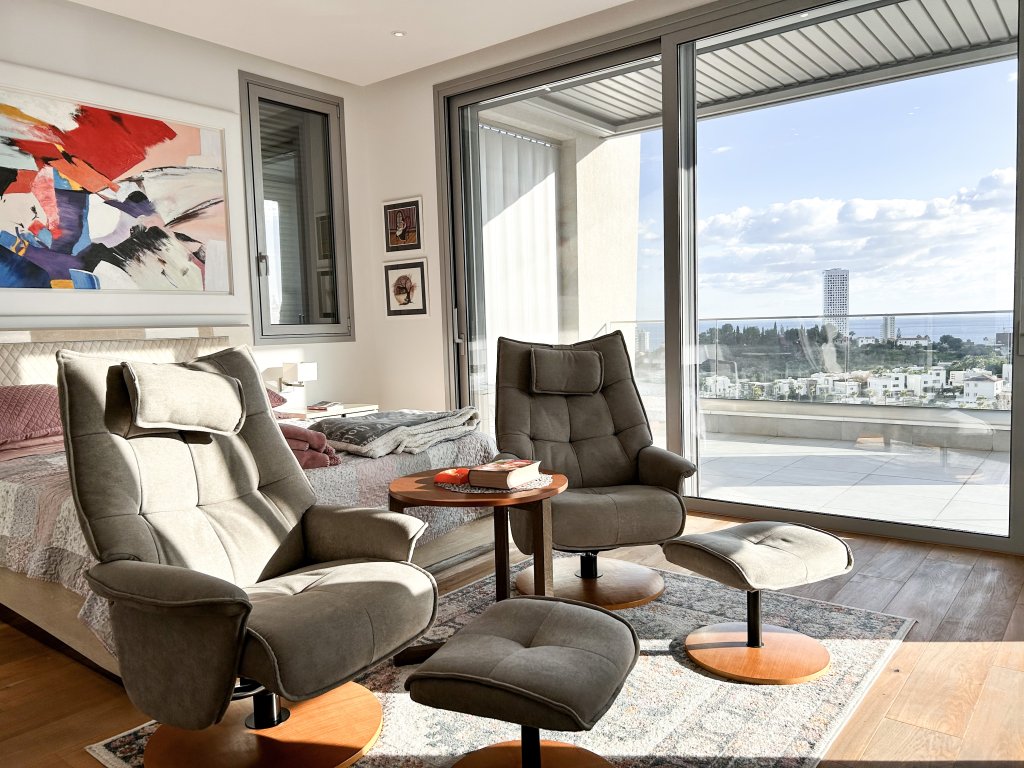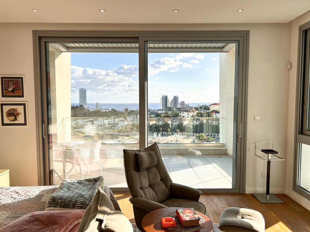 m2 covered balconies. A spacious kitchen and breakfast area on the ground floor open to a sizable covered balcony with panoramic views of the Limassol Coastline and the sea.