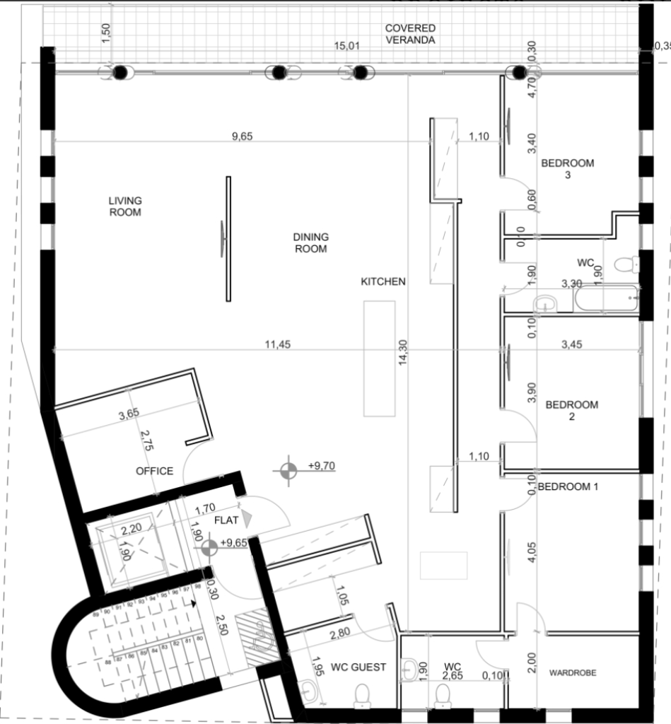 A substantial basement area measuring 428.75m2. Each floor spans 200sqm, topped with an accessible roof garden. A modern and distinctive architectural style.