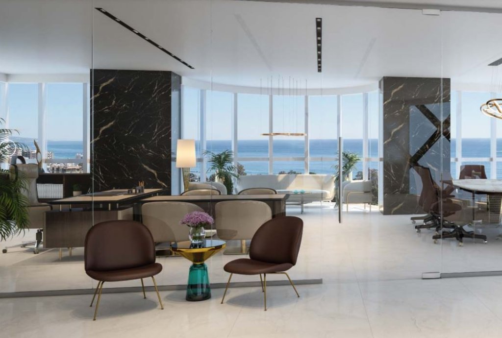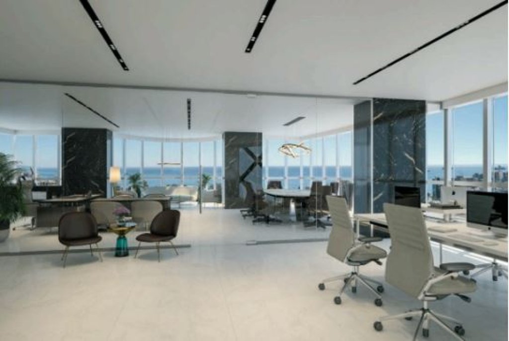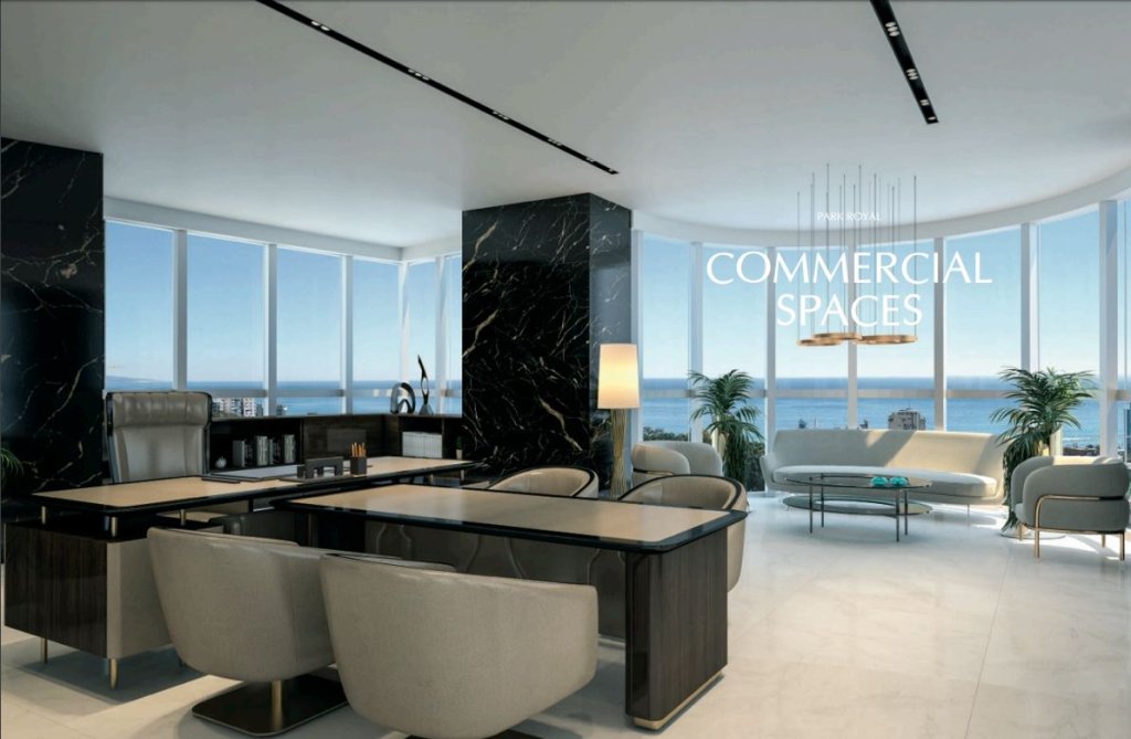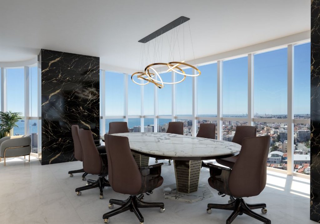 come together in a sustainable way. At the same time, the building's modern profile blends into an established neighborhood showing that intelligent, creative design can elevate urban lifestyle to new levels. With demand for premium corporate accommodation in Limassol continuing unabated, prestige office spaces are designed to meet the needs of high-profile firms seeking an elite address. And the retail shop in the lobby and mezzanine is sure to become one of Limassol's destination stores. Levels above the office floors comprise a limited number of elegant apartments arranged to give views of the park's treetop canopy to the east and over the old town to the west. Some of Limassol's more notable landmarks are beyond.