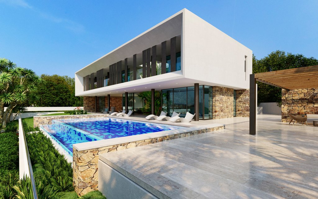 BBQ Area, City Views, Covered parking>Private Parking, Covered Veranda/Balcony, Double Glazed Windows, Guest Toilet, Large Outside Terrace, Master Bed En-Suite, Modern design, Mountain Views, Private Swimming Pool, Provisions for A/C, Provisions for Central Heating, Quiet Location, Rental potential, Road Access, Shops & Amenities Nearby, Uncovered Veranda/Balcony, Village location