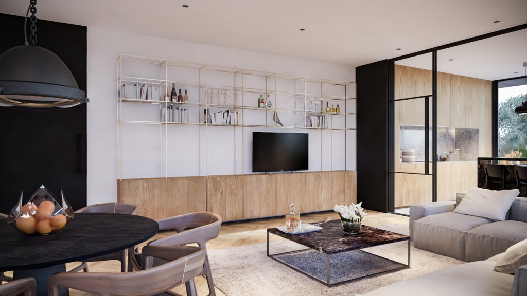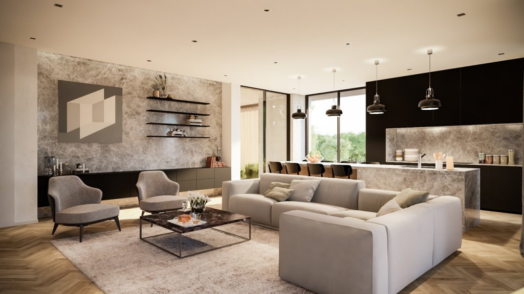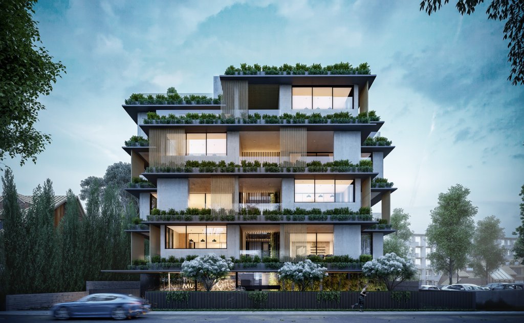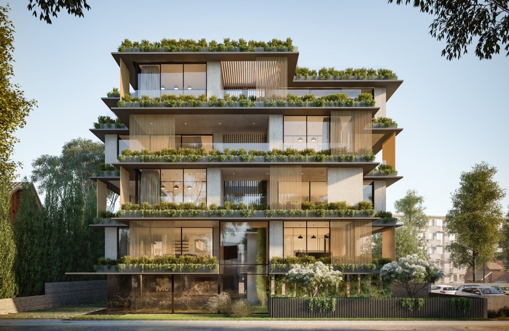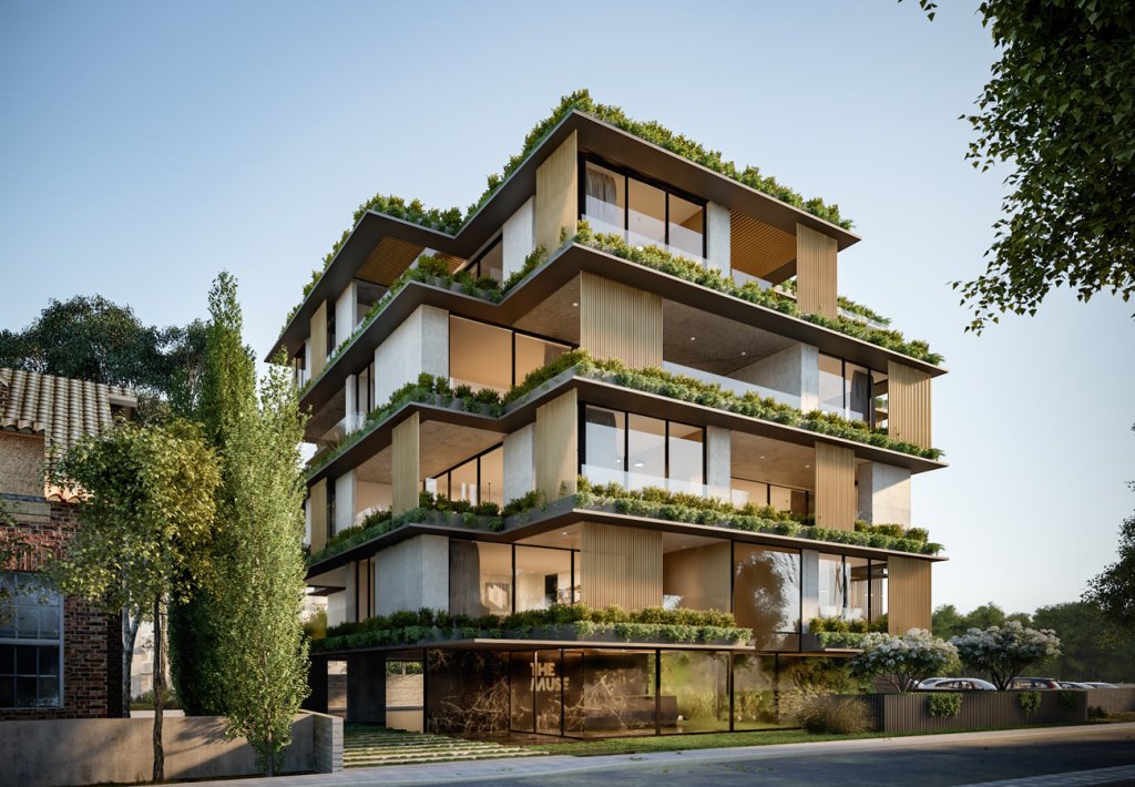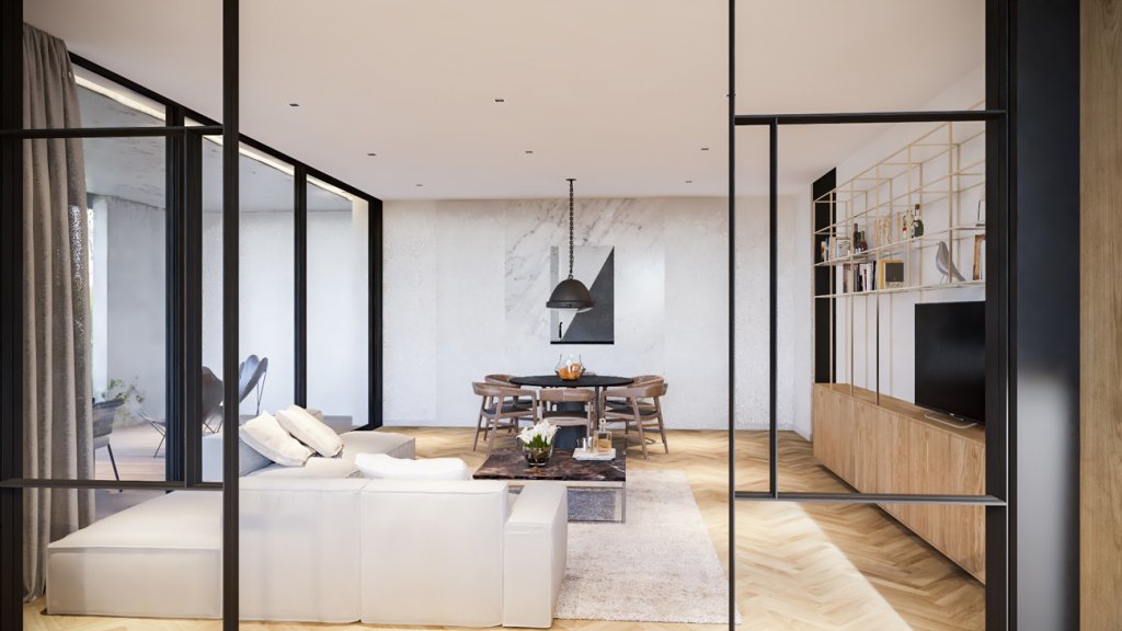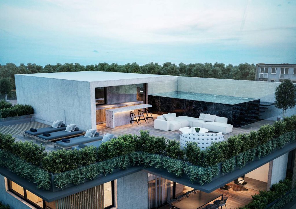 These boutique urban chic apartments consist of six three-bedroom apartments on the first, second, and third floor and Two three-bedroom penthouses with a roof garden and a swimming pool on the fourth and fifth floor.