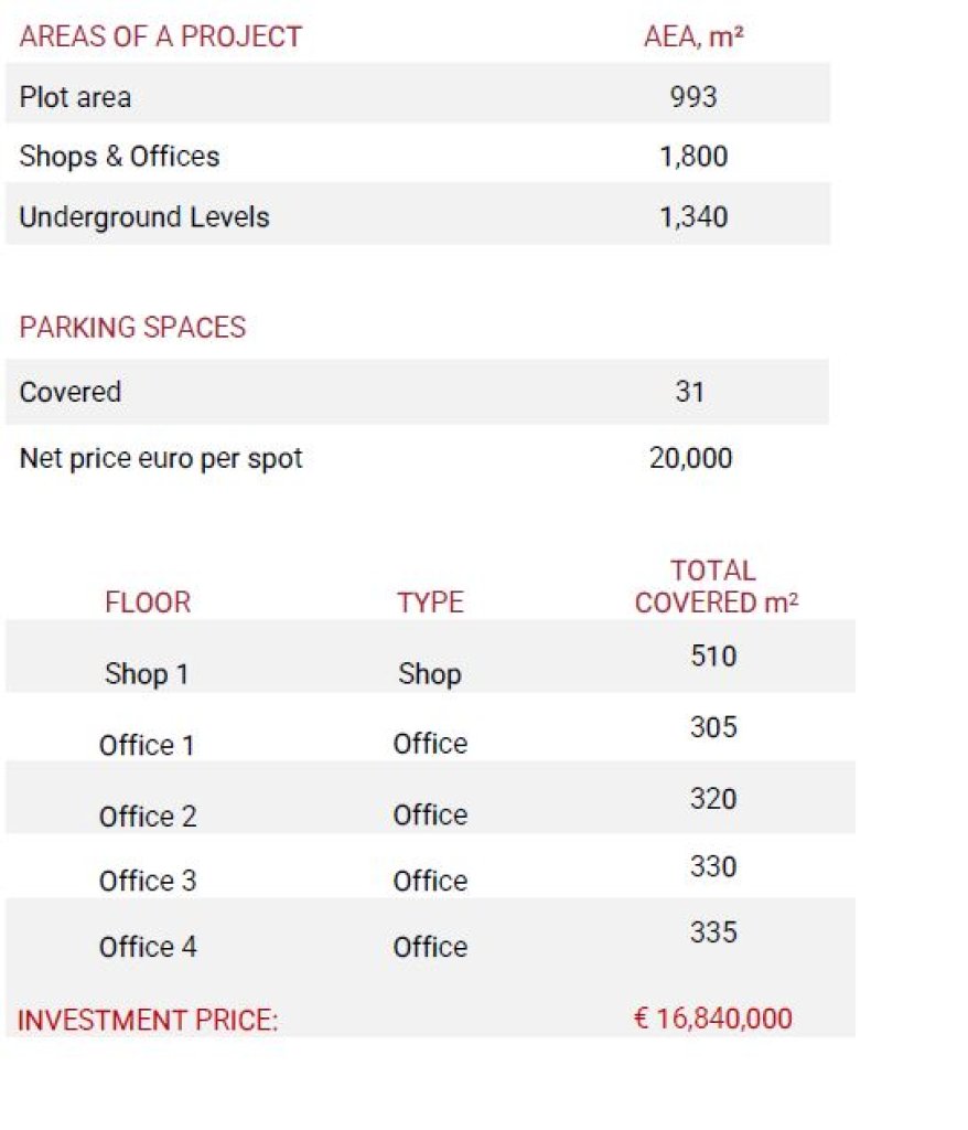 Ground floor with a mezzanine is ideal for shops, showrooms and customer service companies. Its living area is 464m². The remaining four floors offer functional and comfortable office space from 311 to 356m².