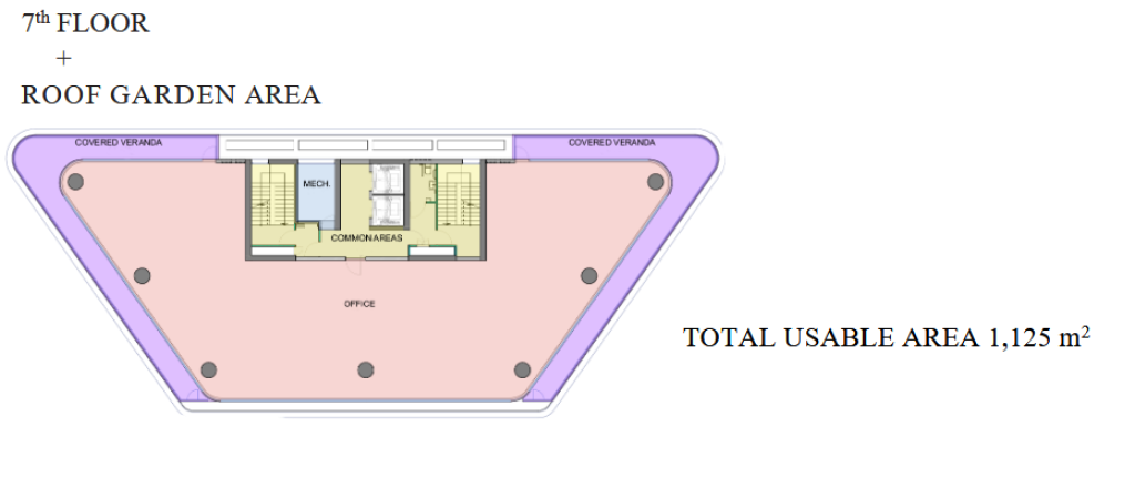 The total area of the building is 8,500 m2, it has 64 parking spaces, a large and functional roof-garden, which is suitable for noisy corporate parties, informal meetings with partners or a cosy rest at the end of a working day.
