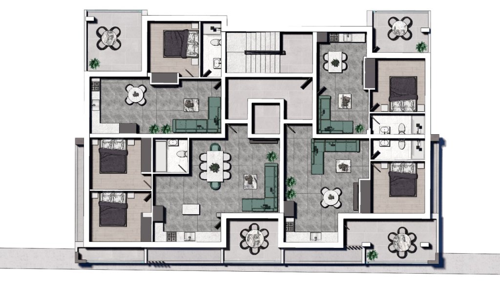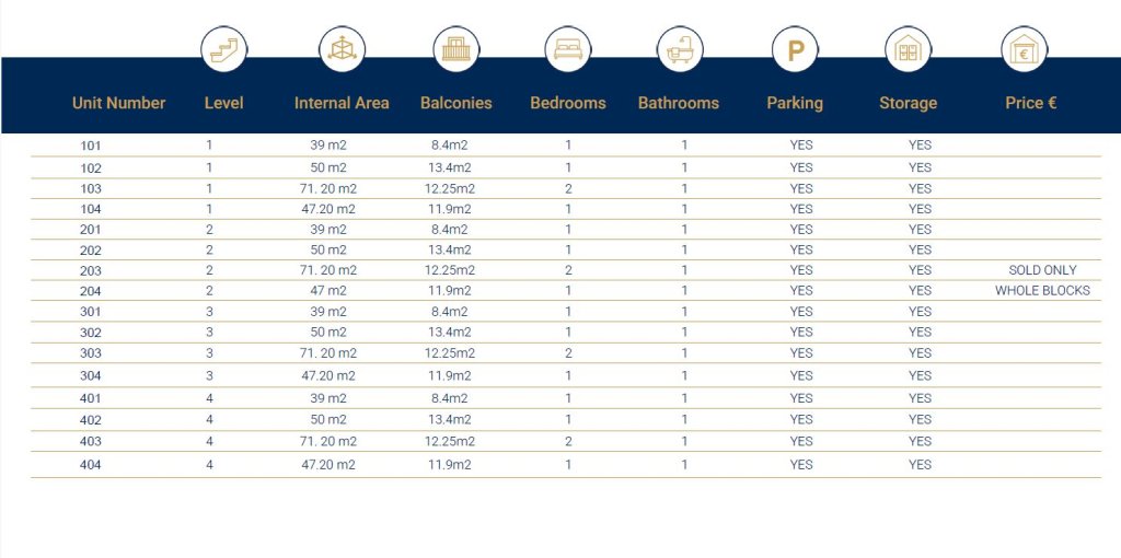 Building is available for sale (16 Apartments), consisting of 4 levels offering on each floor 1 two (double) bedroom apartment and 3 (single) one bedroom apartments.